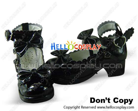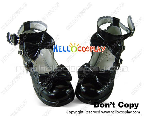 Mirror Black Ruffle Bows Chunky Princess Lolita Shoes