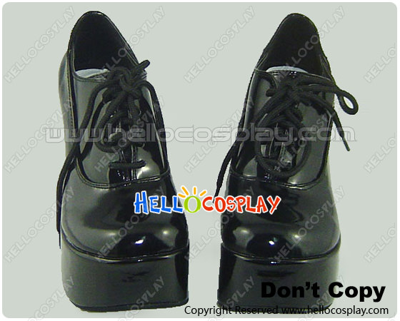 Mirror Black Shoelace Chunky Punk Lolita Shoes