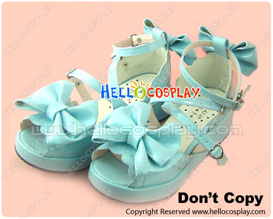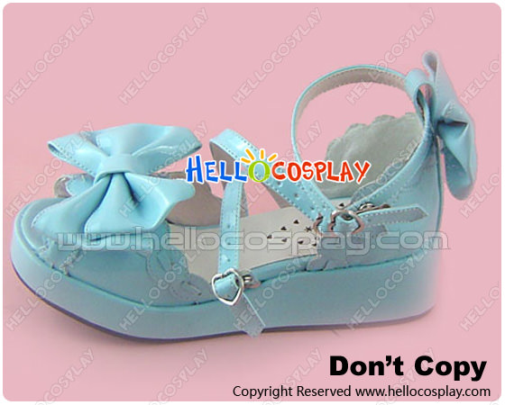 Mirror Blue Bows Instep Straps Platform Princess Lolita Shoes