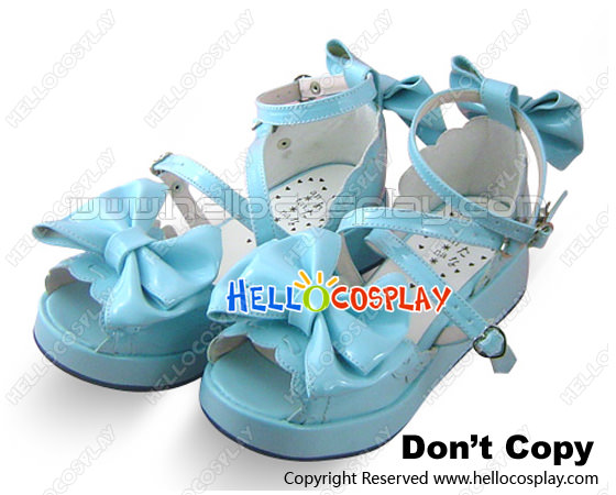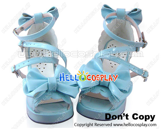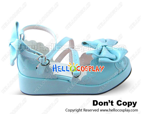 Mirror Blue Heart Shaped Ruffle Platform Princess Lolita Shoes