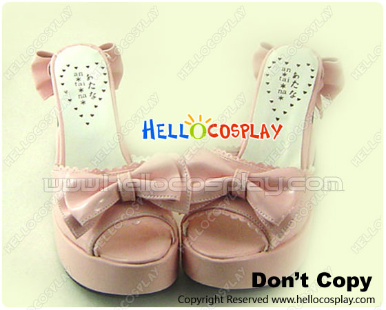 Mirror Pink Bows Ruffle Chunky Sweet Lolita Sandals