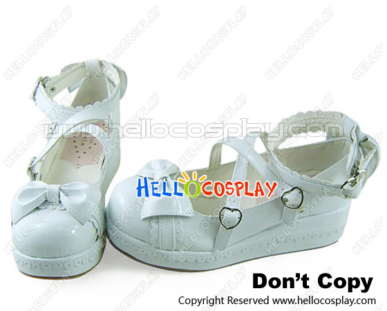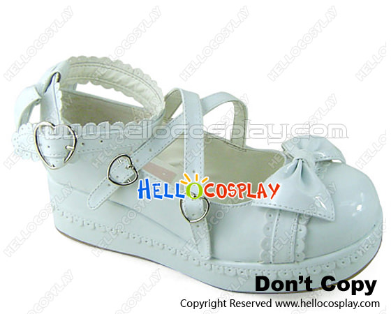 Mirror White Heart Shaped Buckles Platform Princess Lolita Shoes