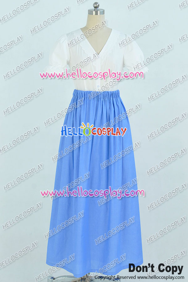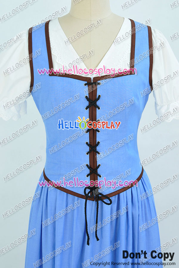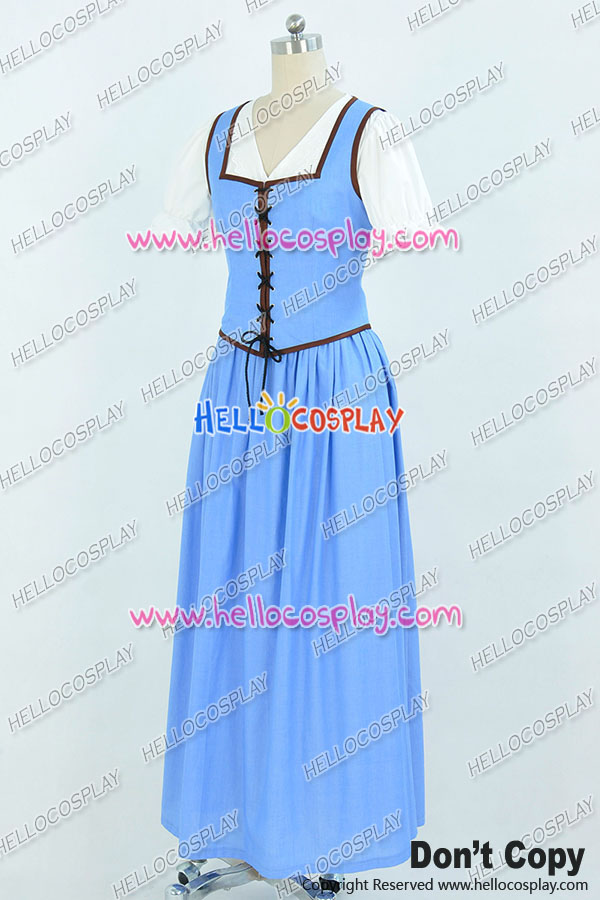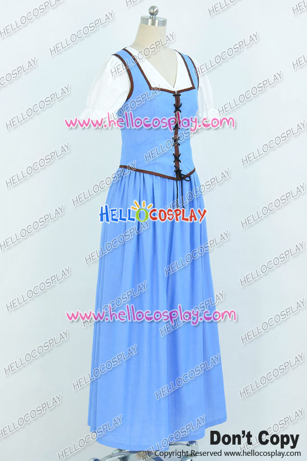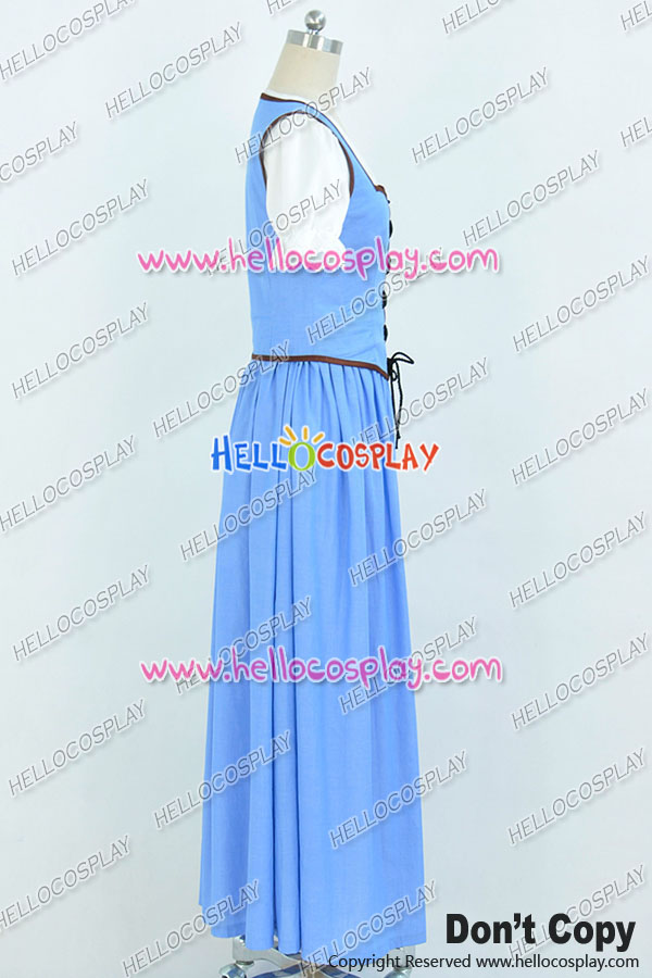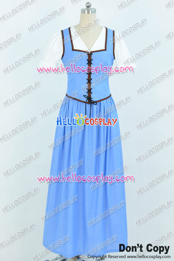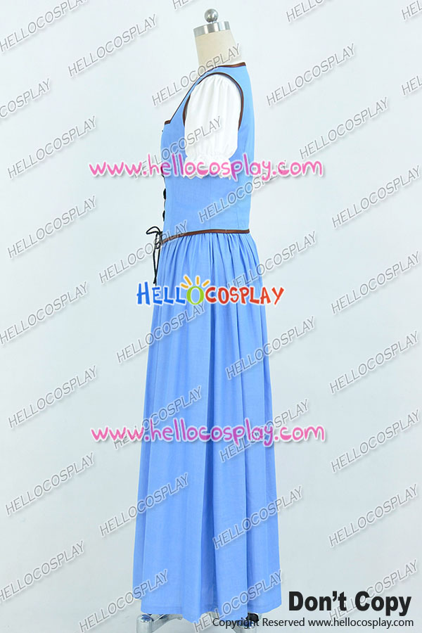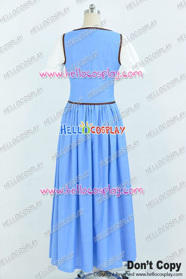 Once Upon A Time Belle Cosplay Costume Blue White Long Dress