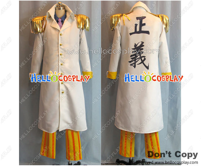 One Piece Cosplay Kizaru Borsalino Costume Admiral Sakazuki Yellow Stripe Suit