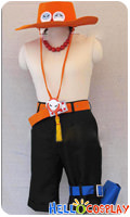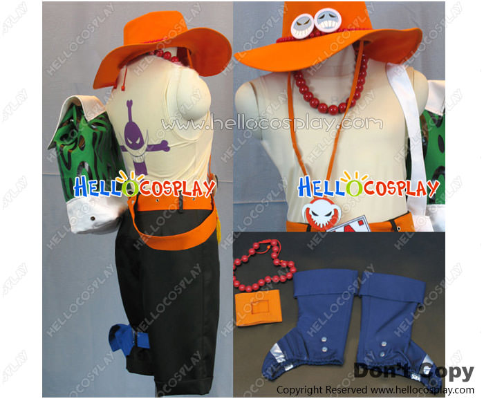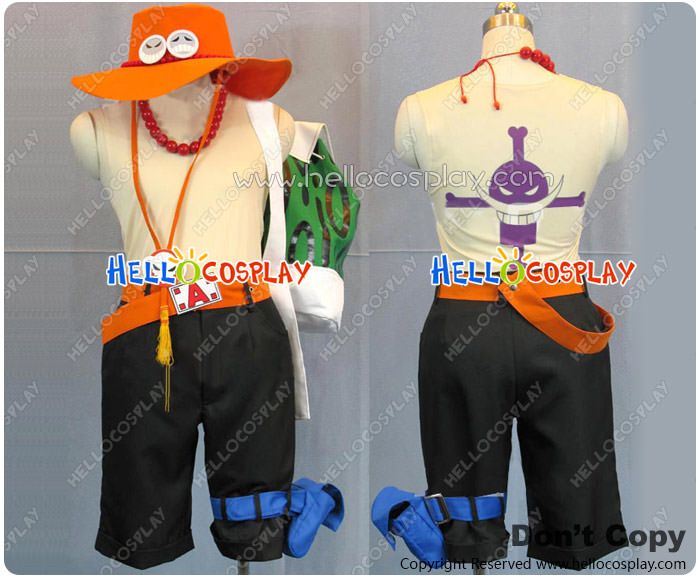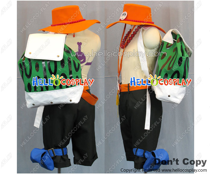 One Piece Cosplay Portgas D Ace Costume Orange Hat Belt Green Bag