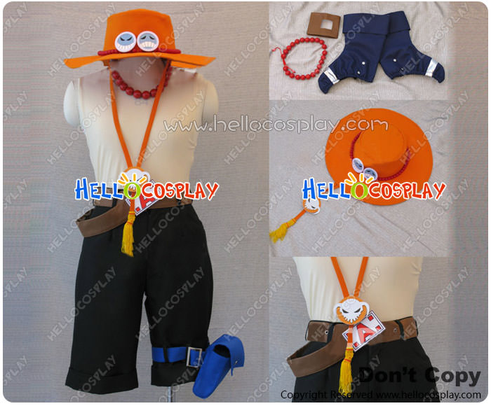One Piece Cosplay Portgas D Ace Costume Orange Hat Full Set