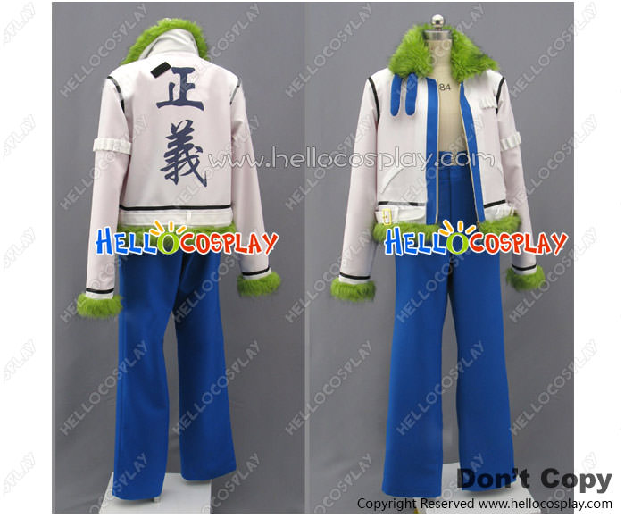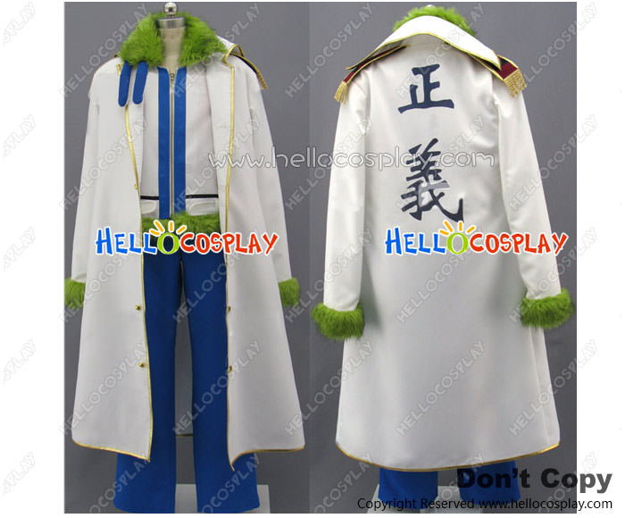 One Piece Cosplay Smoker Navy Costume Green Fur Collar White Coat