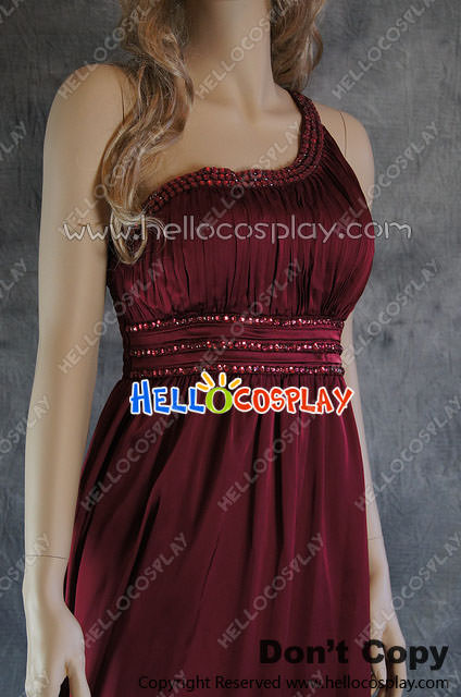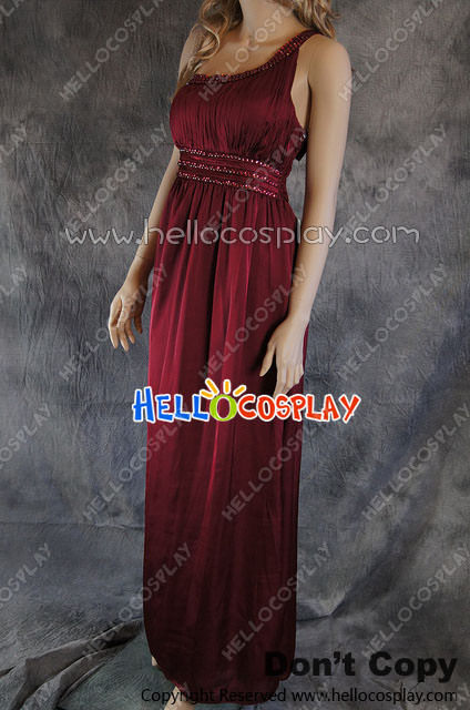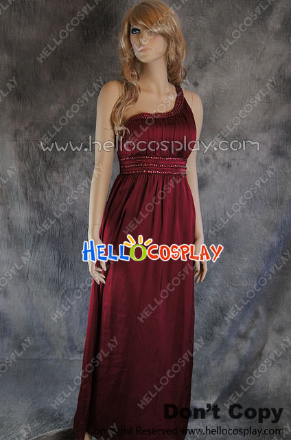 Party Cosplay Red Gem Ball Gown Formal Shoulder Dress Costume