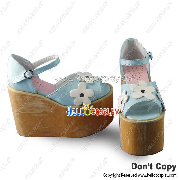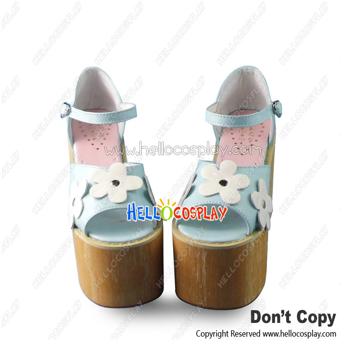 Princess Lolita Mirror Blue With White Daisies High Platform Ankle Strap Sandals