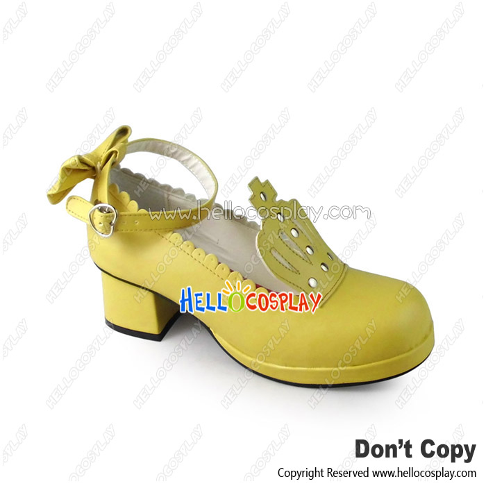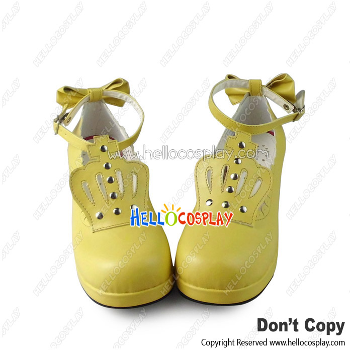 Princess Lolita Shoes Cream Imperial Crown Chunky Lacing Bow Ankle Strap