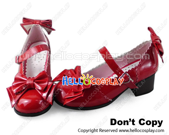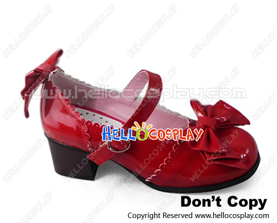 Princess Lolita Shoes Sweet Mirror Red Instep Strap Bows Lace Heart Shaped Buckle