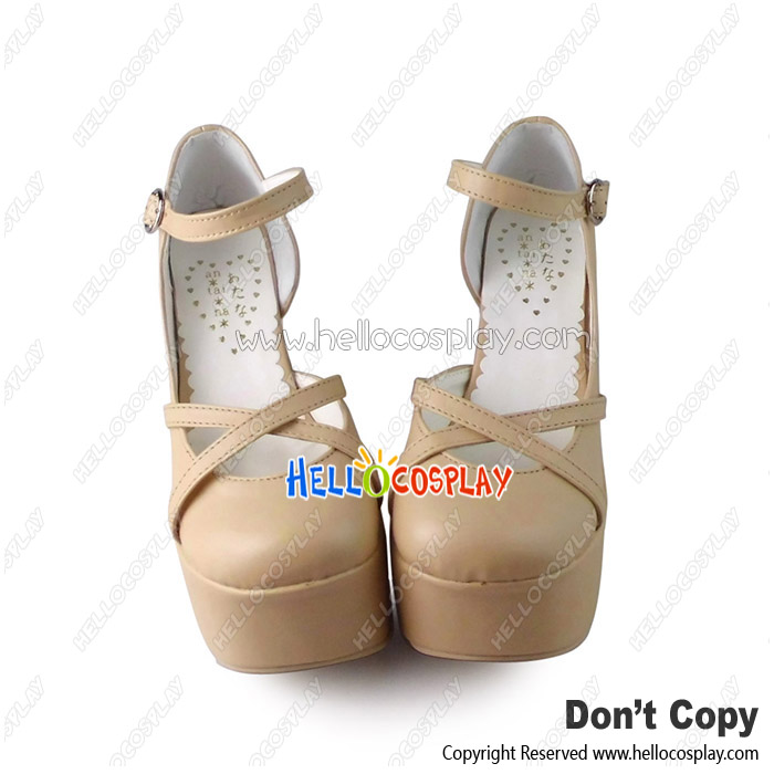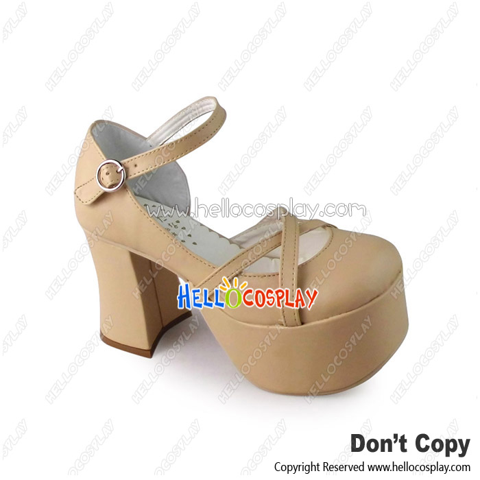 Punk Lolita Shoes Beige Ankle Crossing Straps Chunky Heel