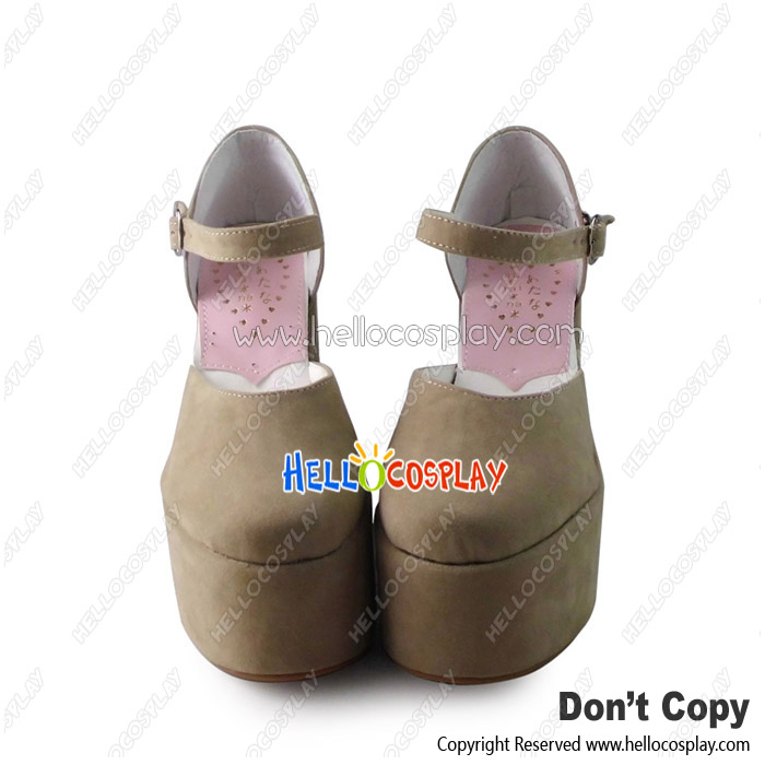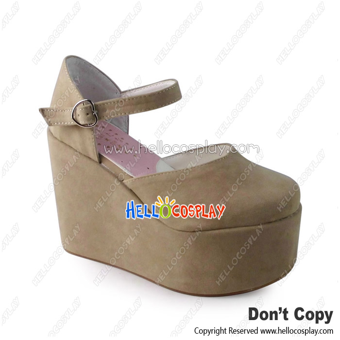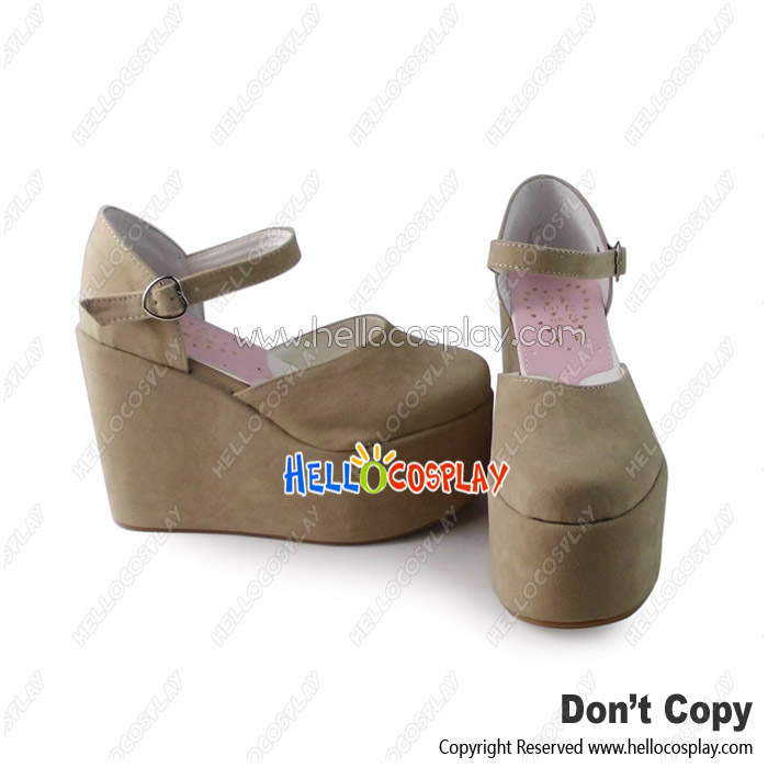 Punk Lolita Shoes Beige Ankle Strap Wedge Heel Hollow Sandals