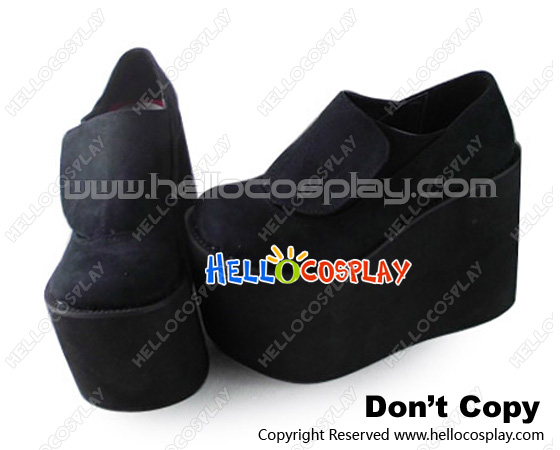 Punk Lolita Shoes Black Suede Magic Buckle High Platform