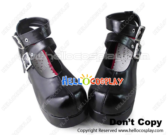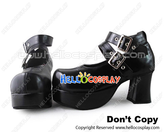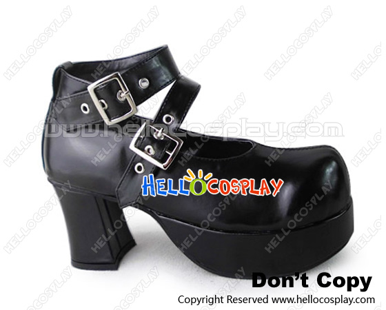 Punk Lolita Shoes Chunky Black Double Straps Square Buckles
