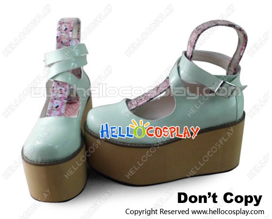 Punk Lolita Shoes Mint Green Wood Platform Zipper Ankle Straps