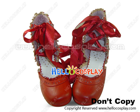 Red Ballet Ribbon Lace Chunky Sweet Lolita Shoes