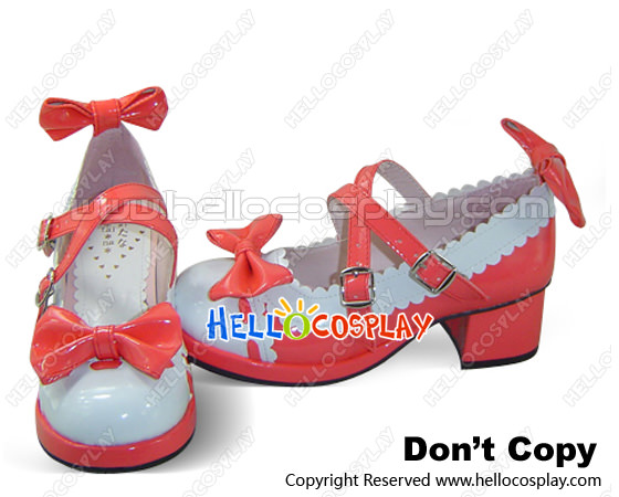 Red Color Blocking Bow PU Leather Chunky Heel Lolita Shoes
