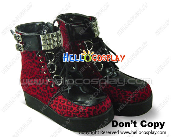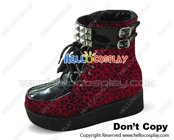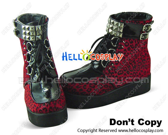 Red Leopard Lace Buckle Straps Platform Punk Lolita Boots
