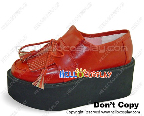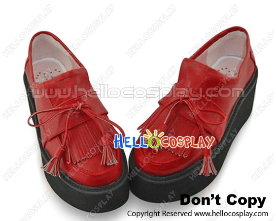 Red Platform Round Short Red Lacing Punk Lolita Shoes