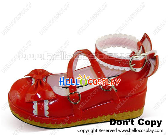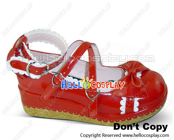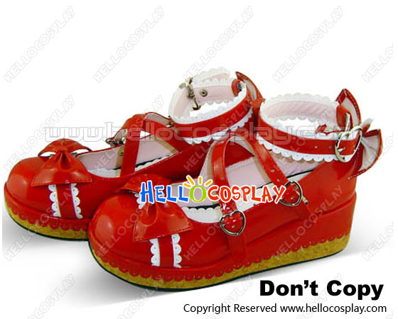 Red White Heart Shaped Buckles Platform Princess Lolita Shoes