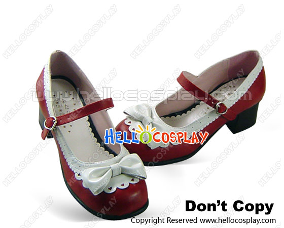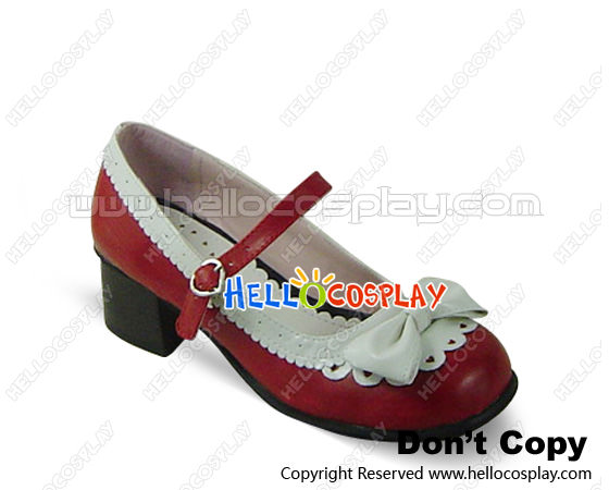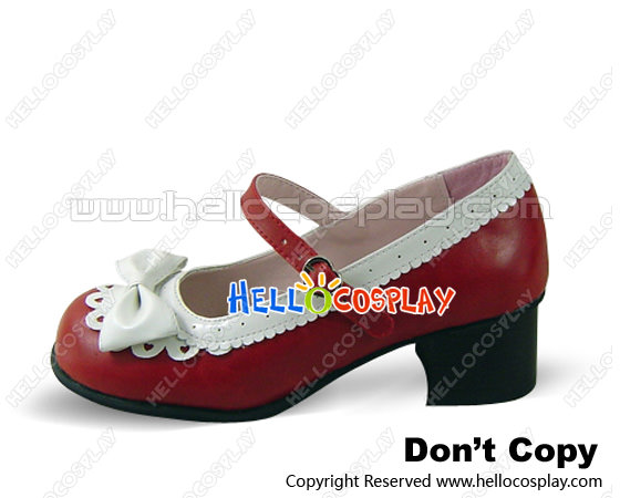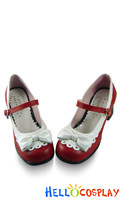 Red White Heart Shaped Ruffle Chunky Princess Lolita Shoes