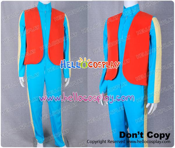 S W Cosplay Blue Jumpsuit Orange Vest Costume