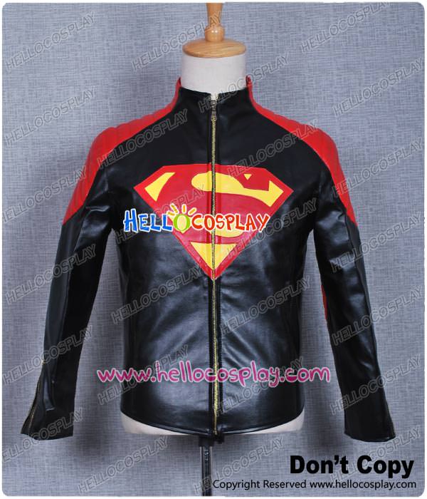 Smallville Clark Kent Cosplay Black Red Leather Jacket Coat Costume