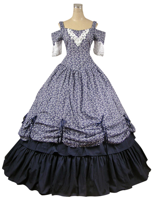 Southern Belle Civil War Ball Gown Prom Floral Cotton Dress
