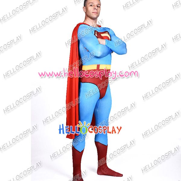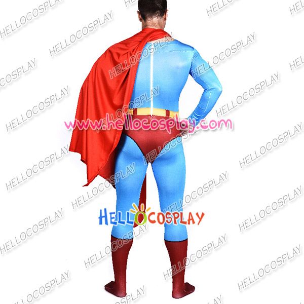This jumpsuit make Superman’s shorts and belt combine together, there is a symbol of superman on the chest of jumpsuit. Superman is a fictional superhero appearing in American comic books published by DC Comics. Superman’s appearance is distinctive and iconic; he usually wears a blue costume, red cape, and stylized red-and-yellow “S” shield on his chest.