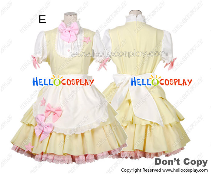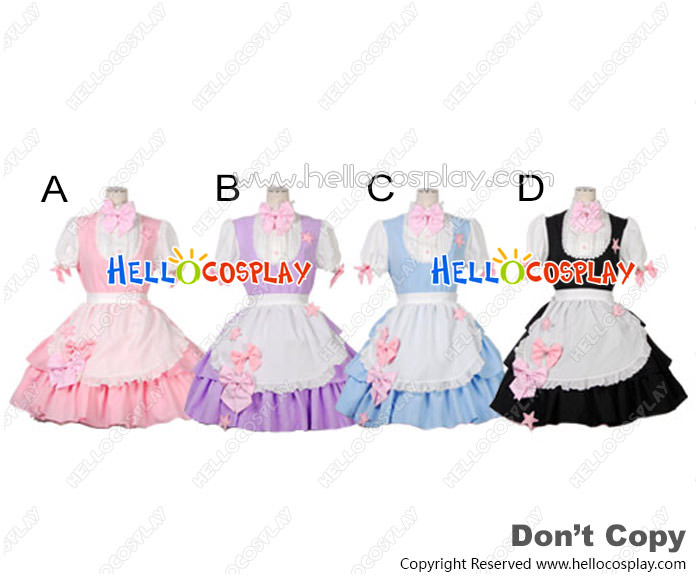 Sweet Fluffy Lace Bow Knots Stars Cosplay Maid Dress Costume