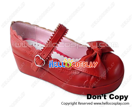 Sweet Lolita Shoes Wine Red Dentate Single Strap Platform Lace Buckle