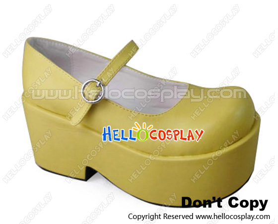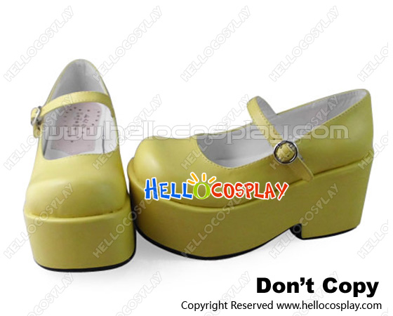Sweet Lolita Wedge Shoes Milk Yellow Single Strap Hasp Round Buckle