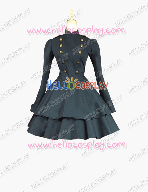 Victorian Lolita Steampunk Military Coat Gothic Lolita Dress Black