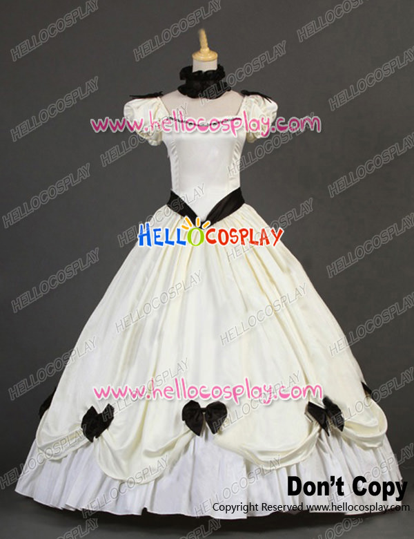 Victorian Southern Belle Princess Ball Gown Formal Reenactor White Lolita Dress Costume