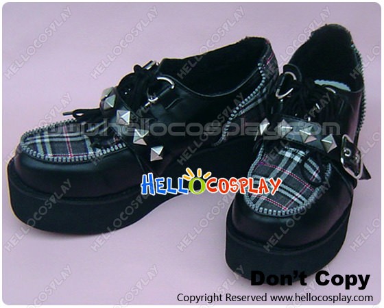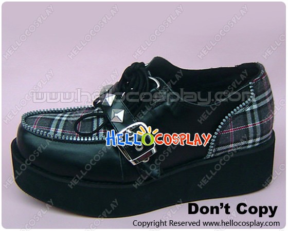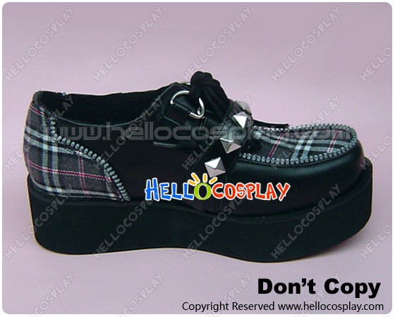 White Black Gingham Lace Buckles Platform Punk Lolita Shoes