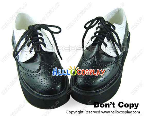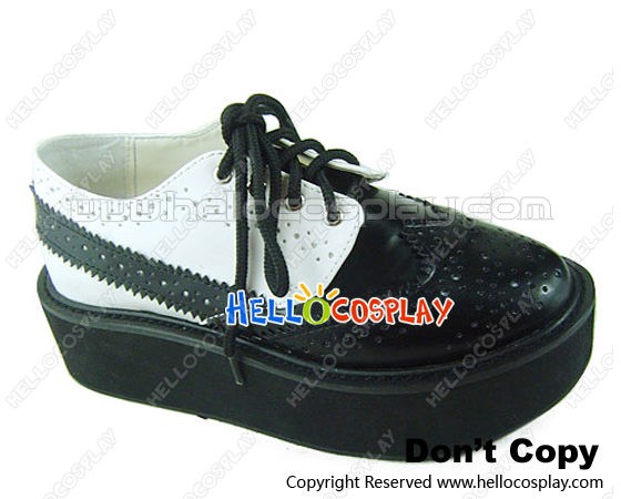 White Black Shoelace Platform Punk Lolita Shoes