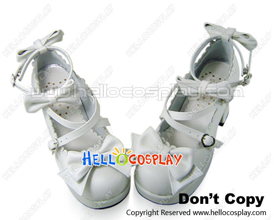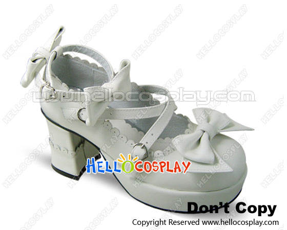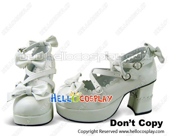 White Crossing Straps Chunky High Heels Platform Lolita Shoes
