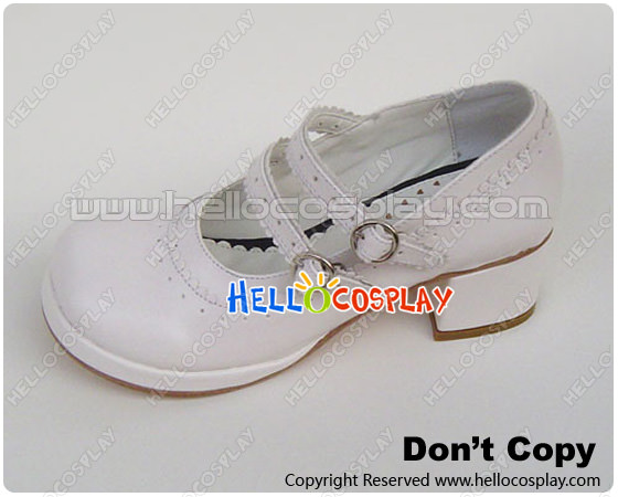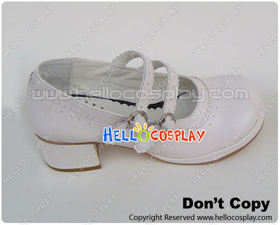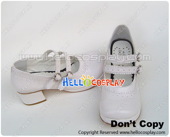 White Double Straps Chunky Sweet Lolita Shoes