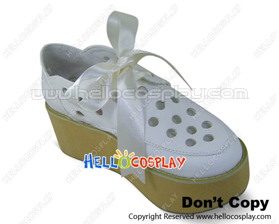 White Ribbon Lace Round Hole Platform Punk Lolita Shoes