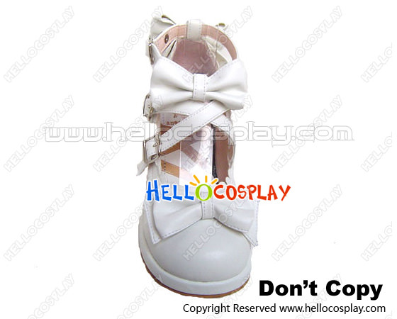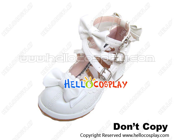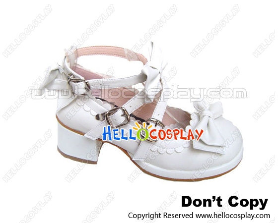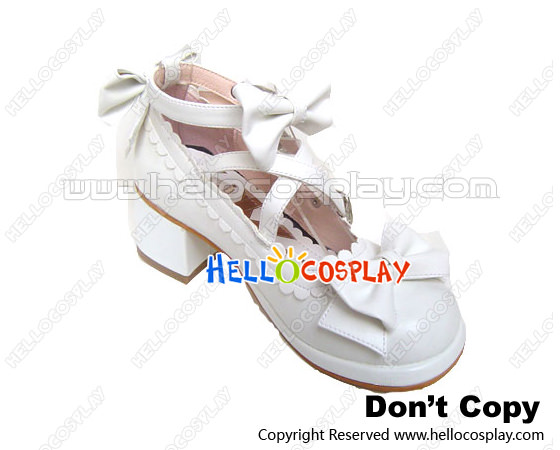 White Ruffle Bows Straps Chunky Princess Lolita Shoes