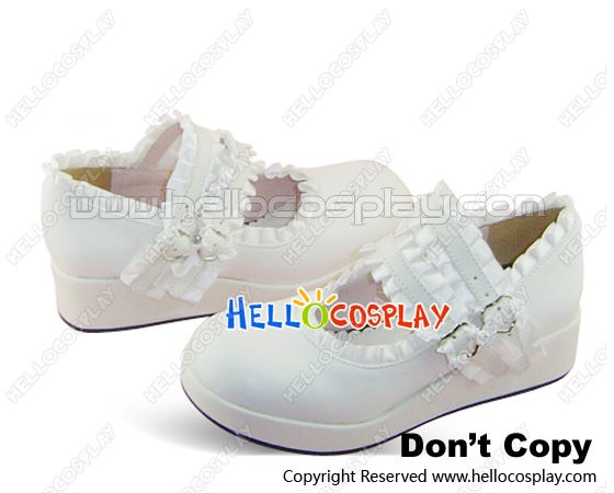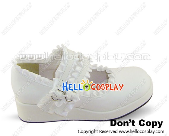 White Satin Ruffle Double Straps Platform Sweet Lolita Shoes