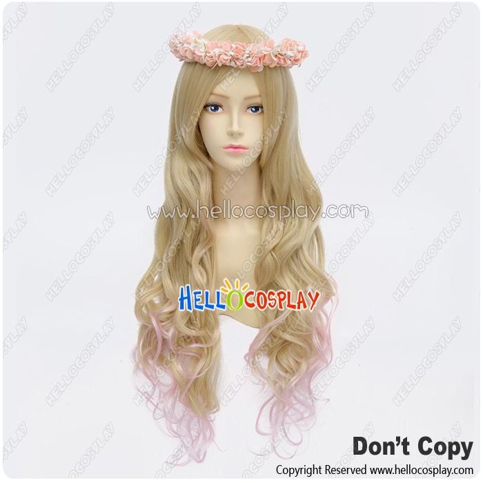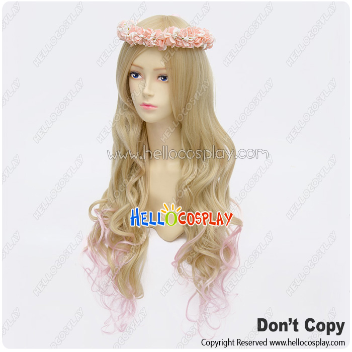 Wig Lolita Cosplay Curly Long Sweet Cute Princess Golden Pink Gradual Change