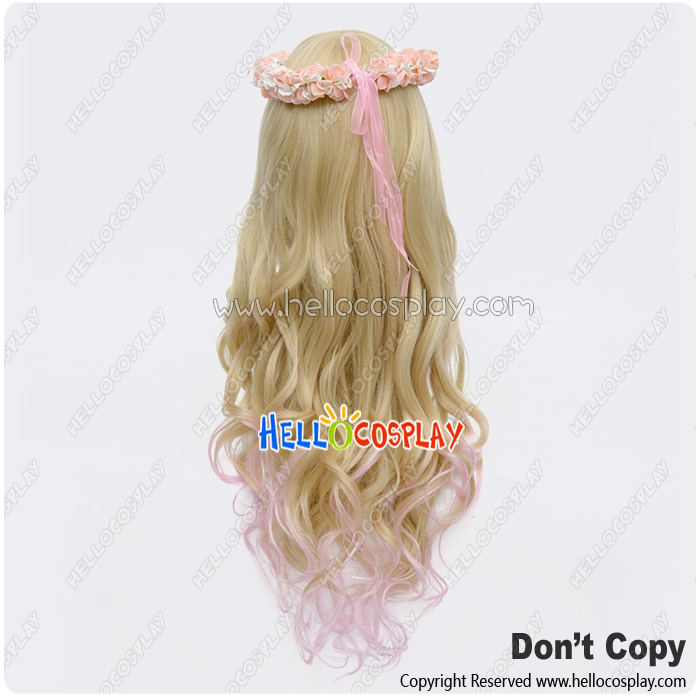 Wig Lolita Cosplay Curly Long Sweet Cute Princess Golden Pink Gradual Change(not include headwear)