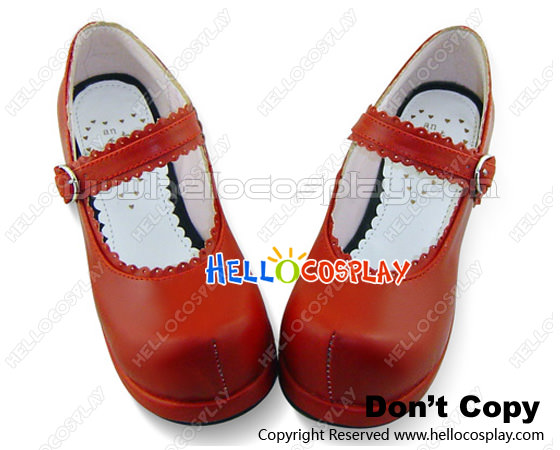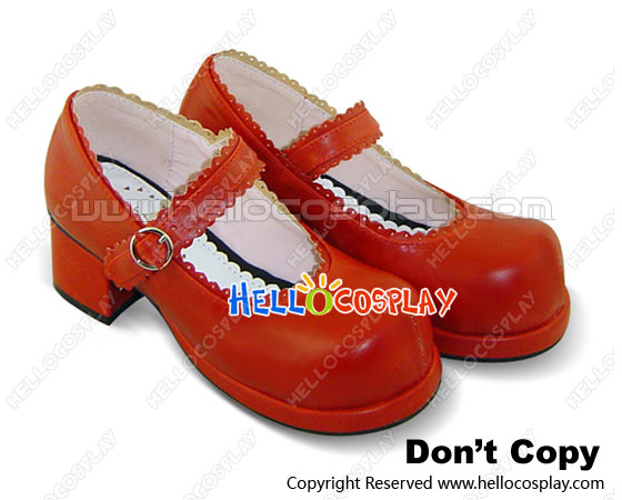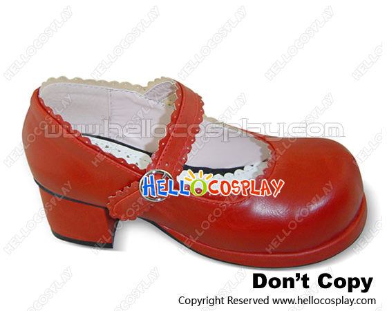 Wine Red Single Ruffle Strap Chunky Princess Lolita Shoes